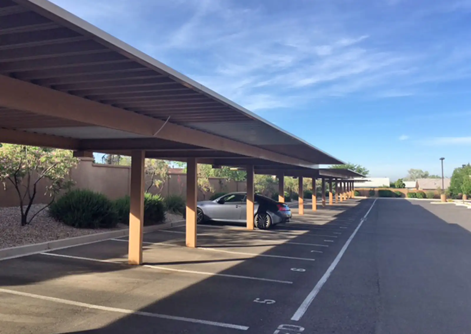 - Two covered parking spaces