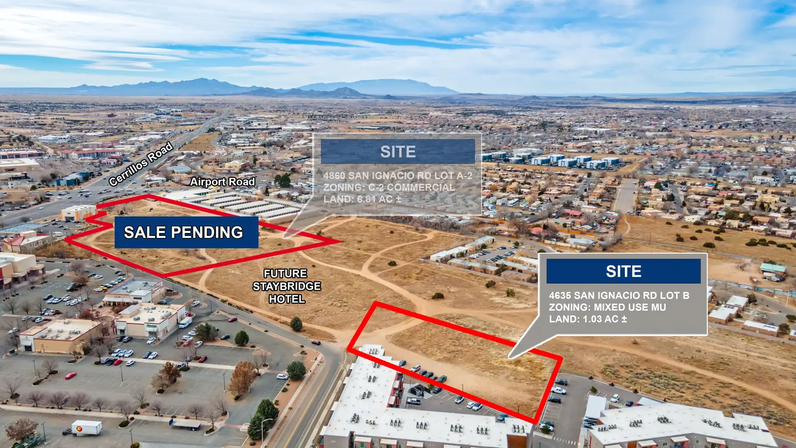 - Prime infill site with easy access to Airport Rd. and Cerrillos Rd.