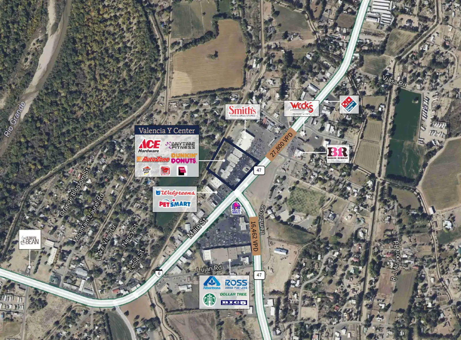 • Major traffic node on Main St. & Hwy 47 in Los Lunas