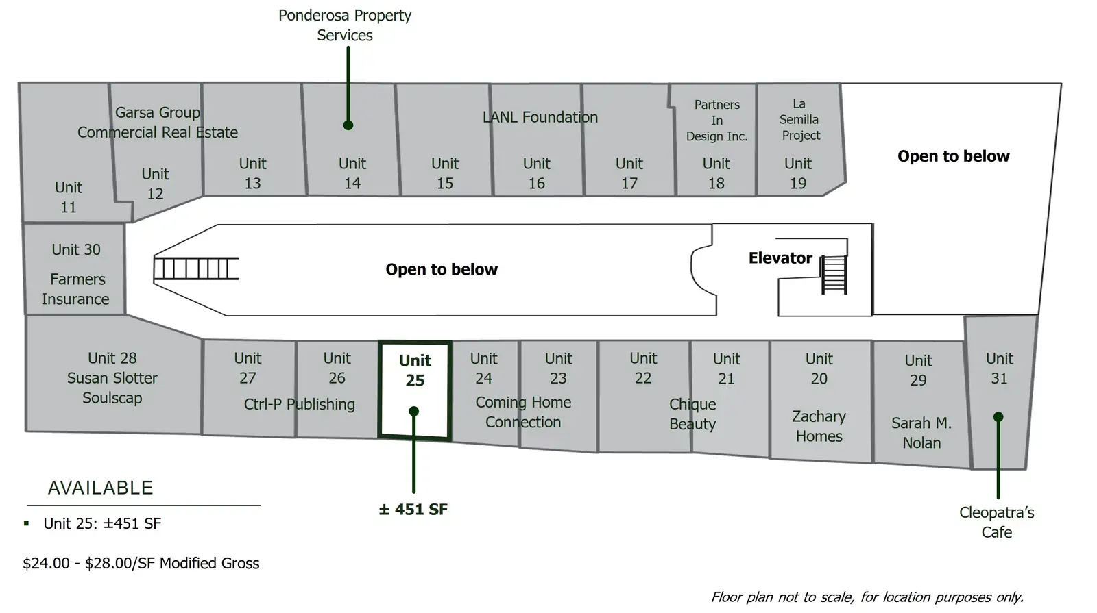 | Unit 25 | 2 | Negotiable | 451 SF | |
