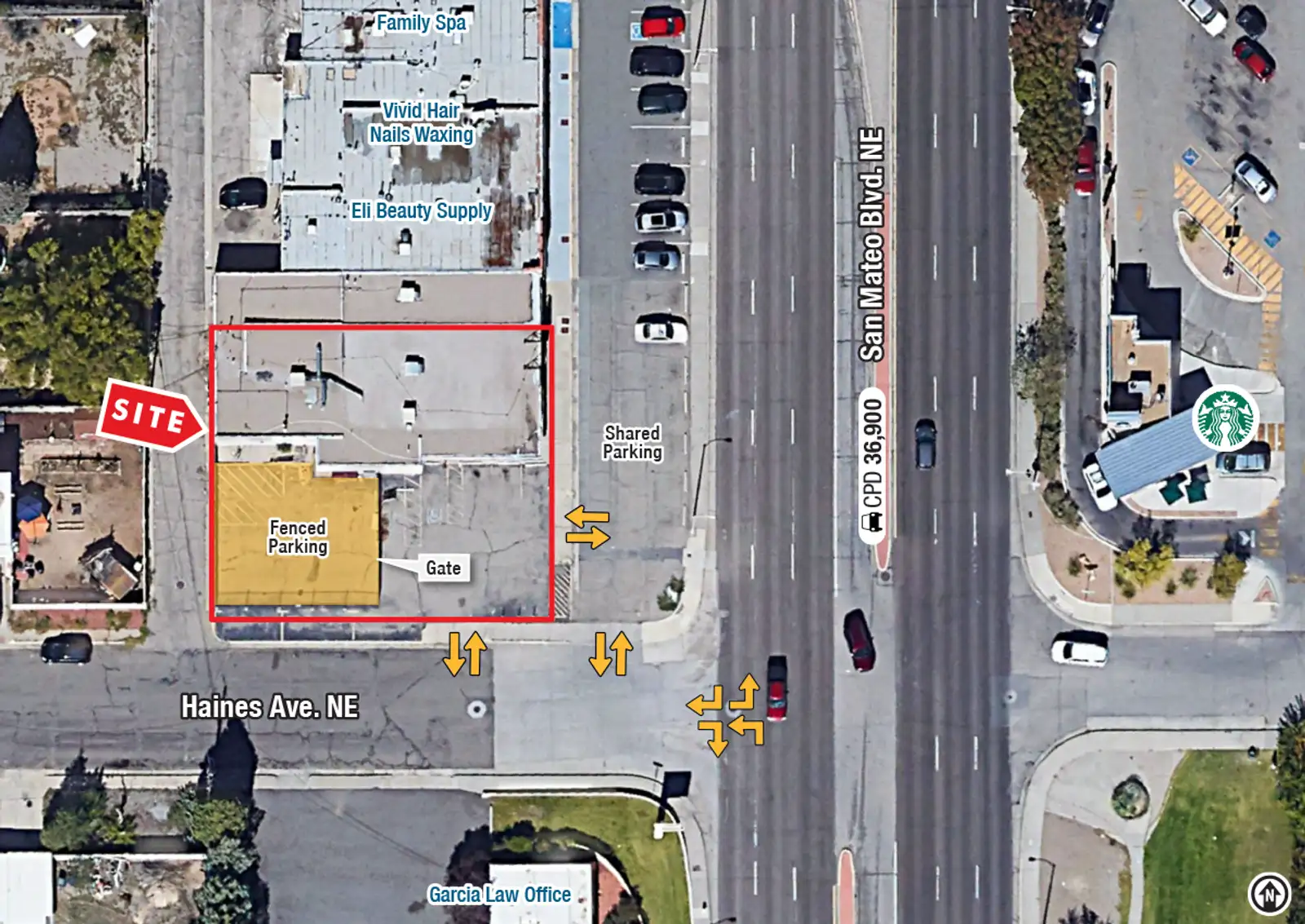 - Full access from San Mateo Blvd.