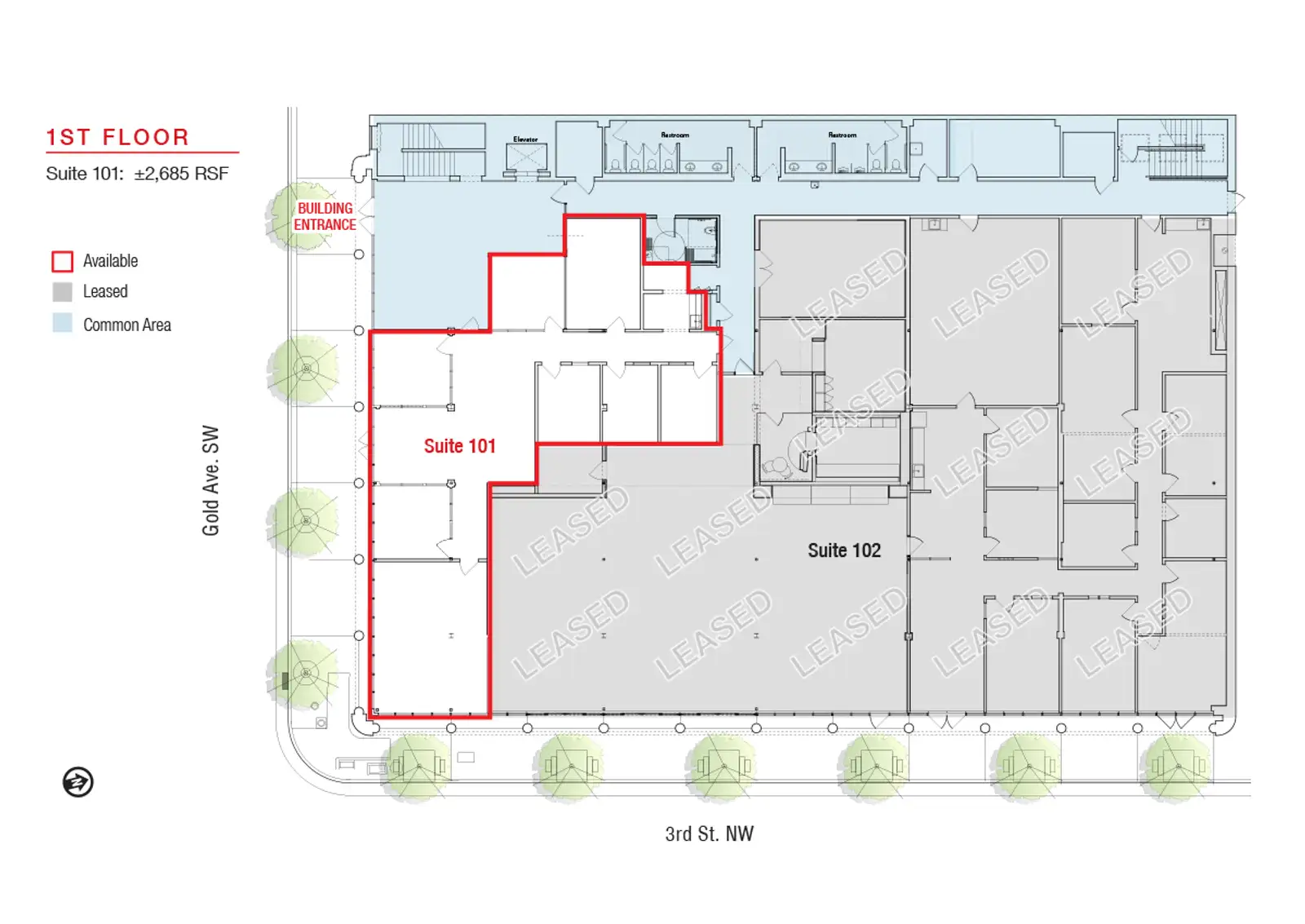 | Suite 101 | 1 | $20 /SF/Year | 2,685 SF |