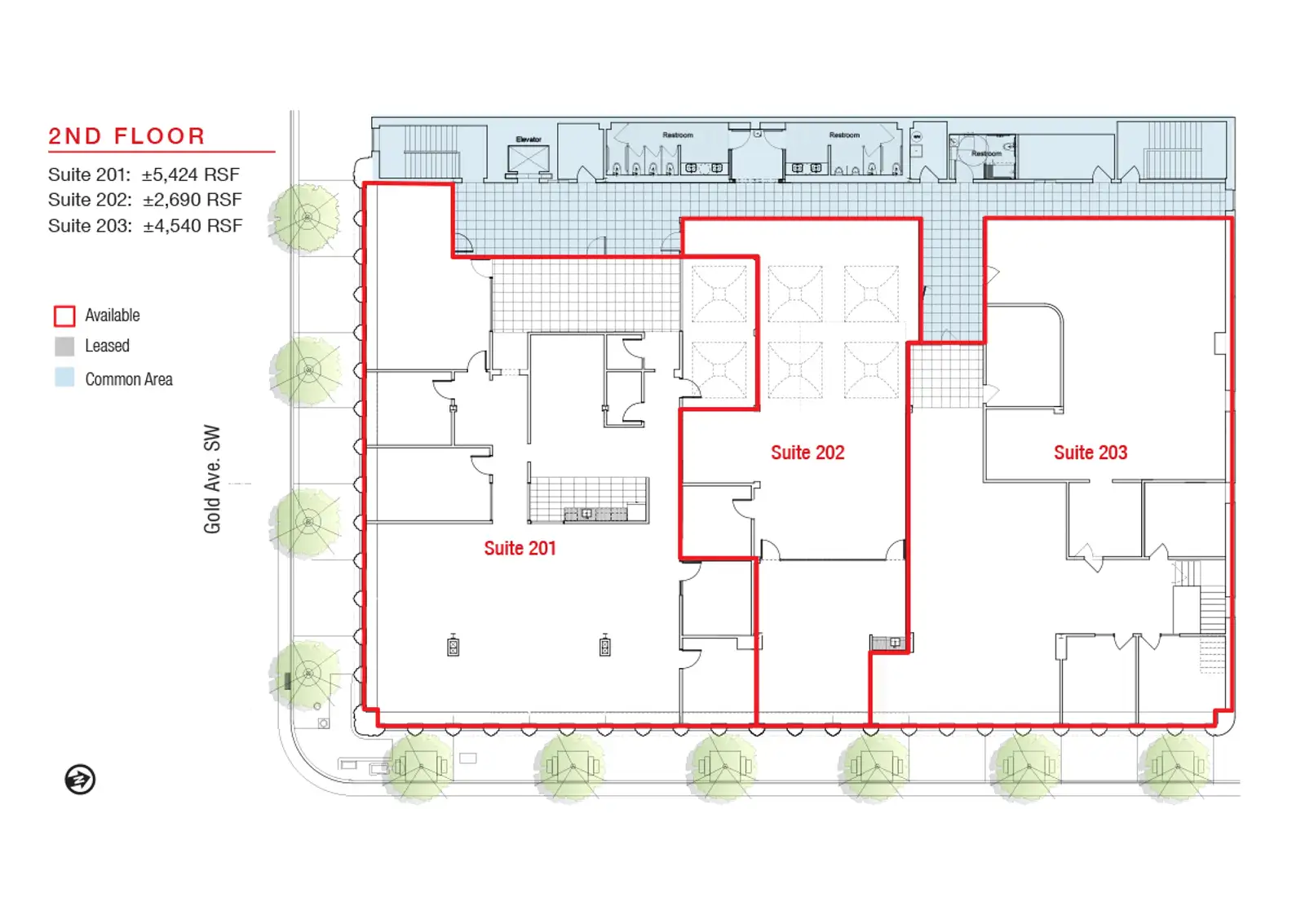 | Suite 201 | 2 | $20 /SF/Year | 5,424 SF |